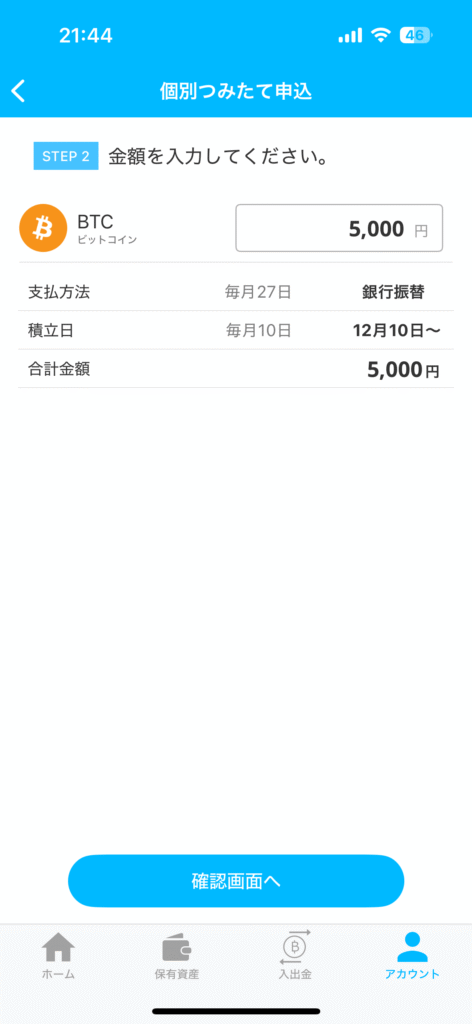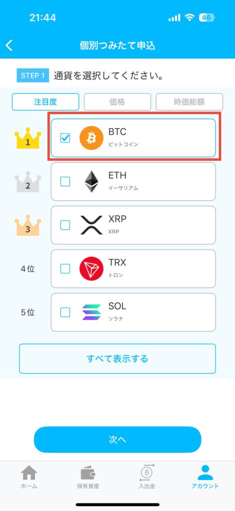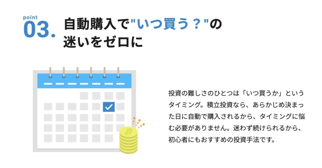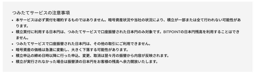 サービス対象が少ないので他の暗号資産にも積立したい人には少し物足りない