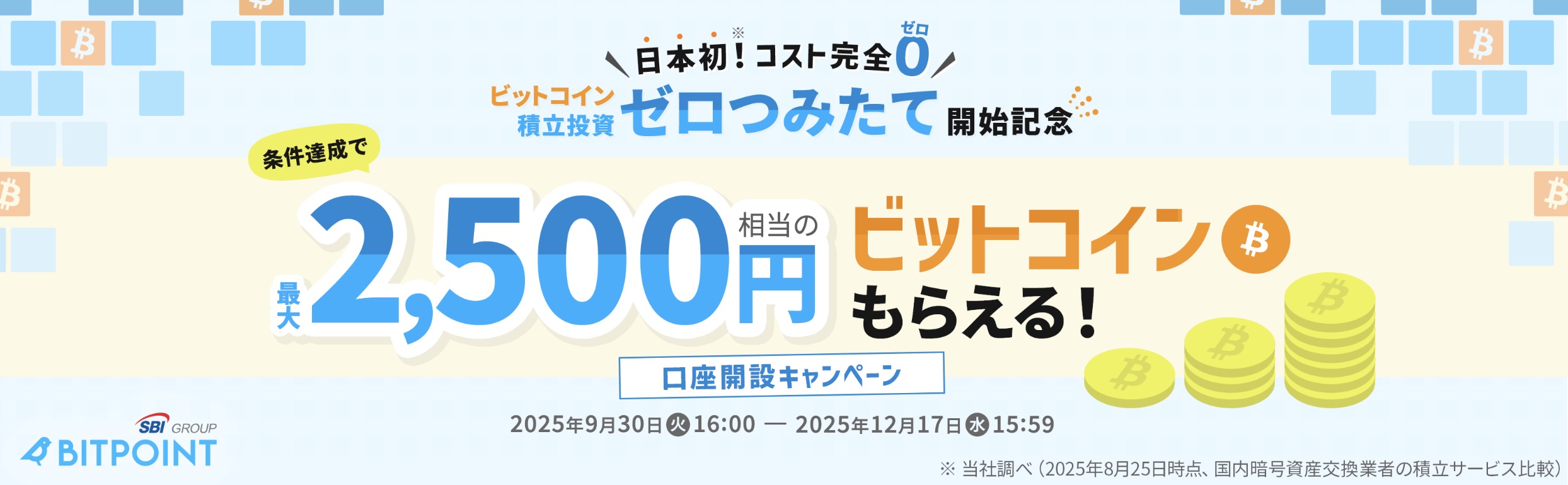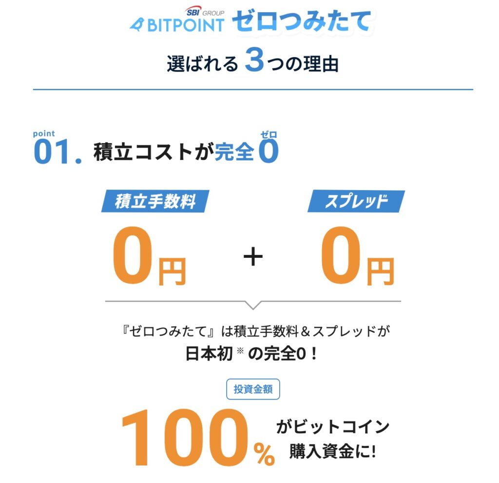 ビットポイントの「ゼロつみたて」は手数料・スプレッドなし