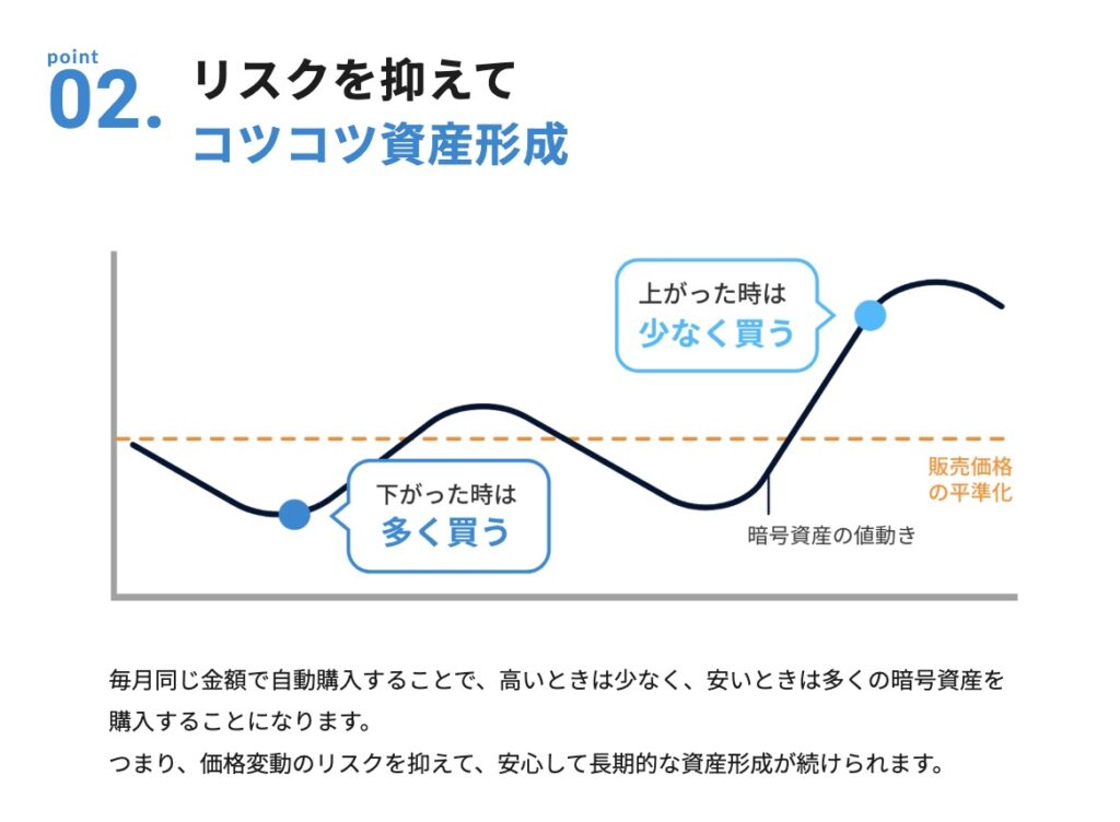 定期つみたてによるドルコスト平均法により資産形成ができる。