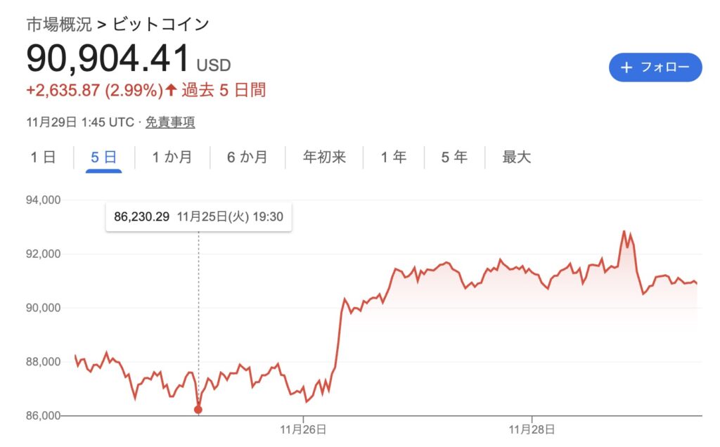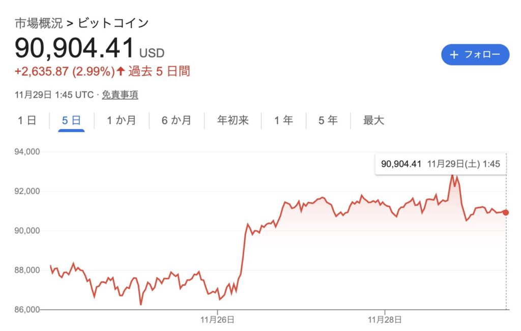 【3分で読める】ビットコイン9万ドルに回復!!11月22日〜29日のニュースまとめ