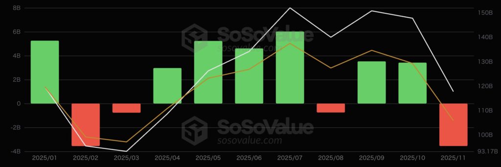 - 11月24日以外 資金流出が戻る(緑) → 一時的に買い戻し発生