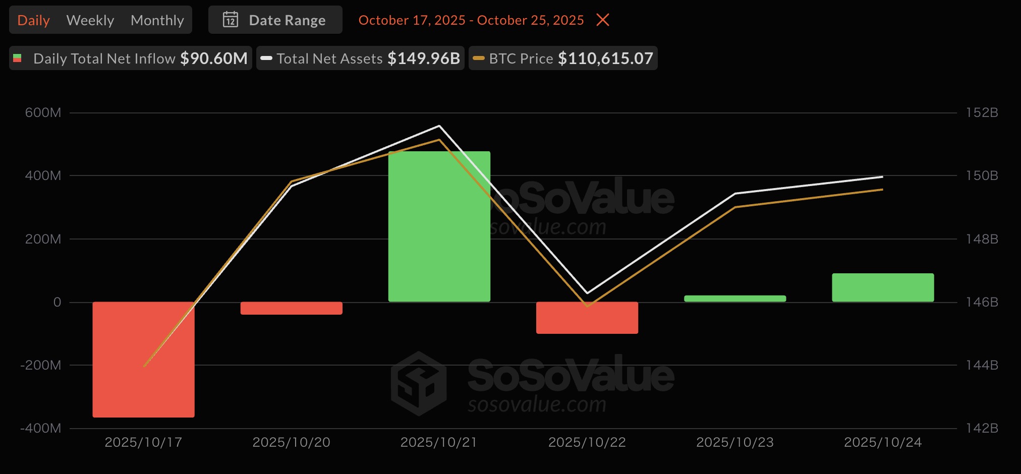 上の図はETFへの資金の入り方をグラフで示したものになります。緑が流入、赤が流出。週間だと17日に流出したものの少しずつ流入があります。
