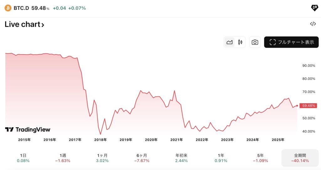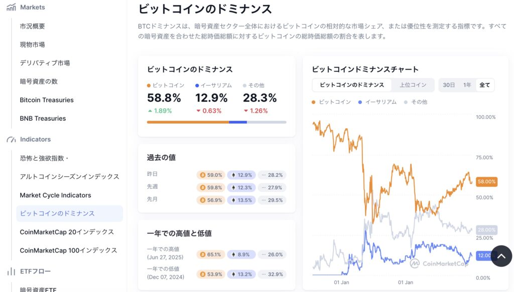 → 過去のドミナンス推移(例:CoinMarketCapのチャート)を見て判断するのが有効。