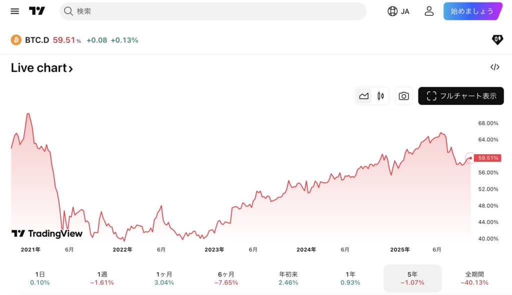 ビットコインドミナンスが高い=市場は「守りモード」。