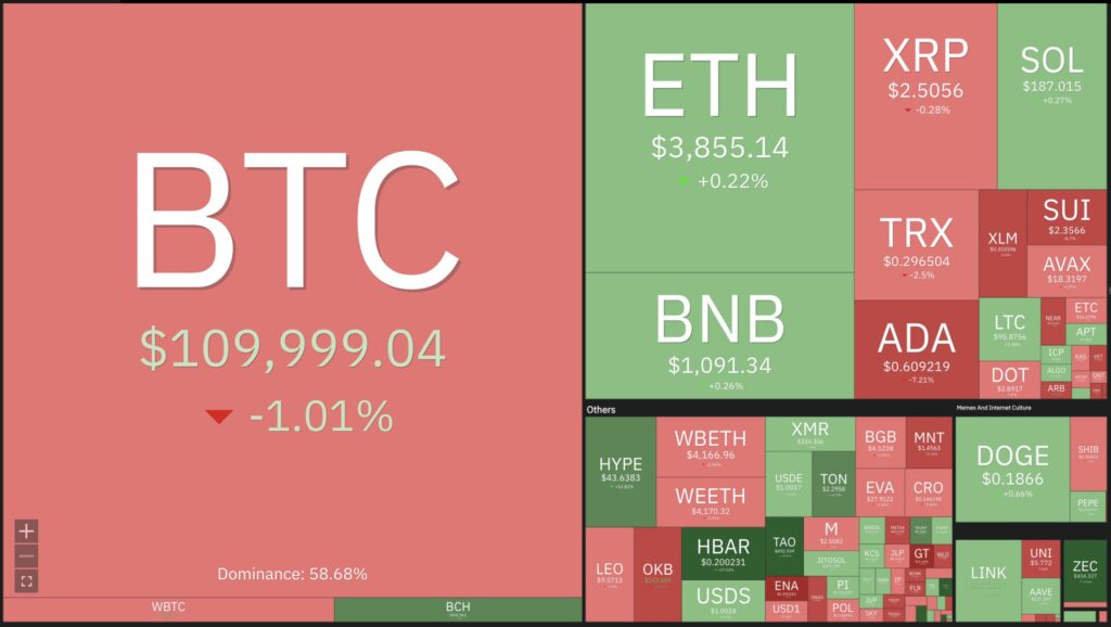 BTCが 約109,999ドルで -1.01% の下落を示しており、マクロ経済や利益確定売りが影響している可能性があります。