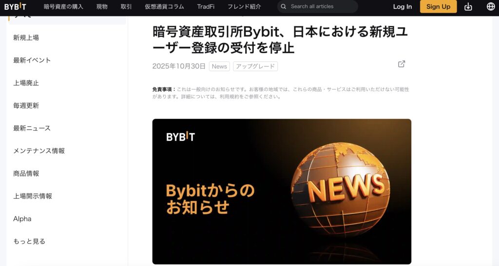 ニュース②Bybitが「日本からの新規登録停止」へ
