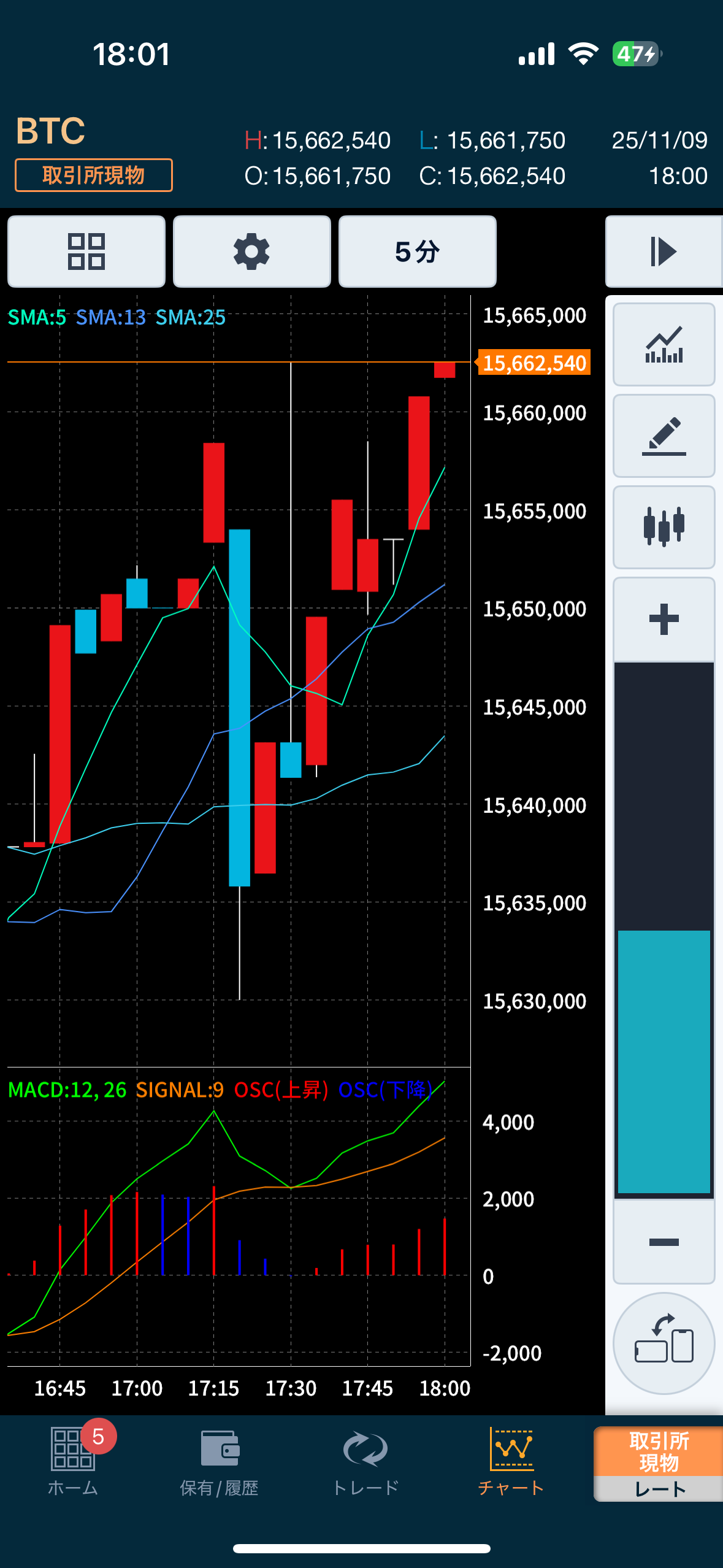紺色基調でニュースやチャート表示も下のタブで表示、取引所もわかりやすいですね!