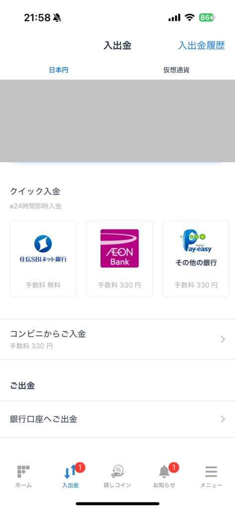 日本円か仮想通貨で分かれています。クイック入金は住信がお得。