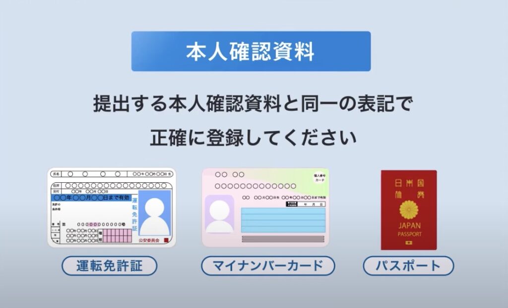 登録はメールで行います。そのあと本人確認で身分証の写真と自分の顔の写真を提出します。ここでたいせつなのは、名前や住所の表記を決してまちがえないことです。ゆっくり落ち着いて、画面の指示どおりに入力しましょう。