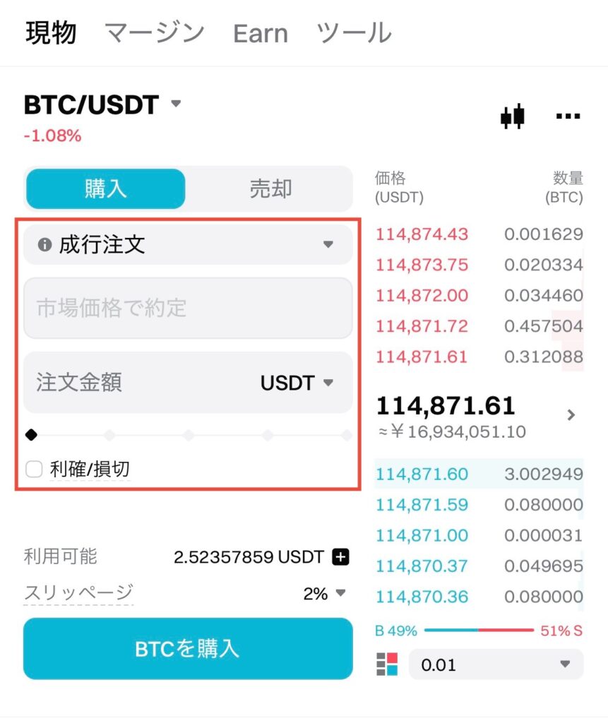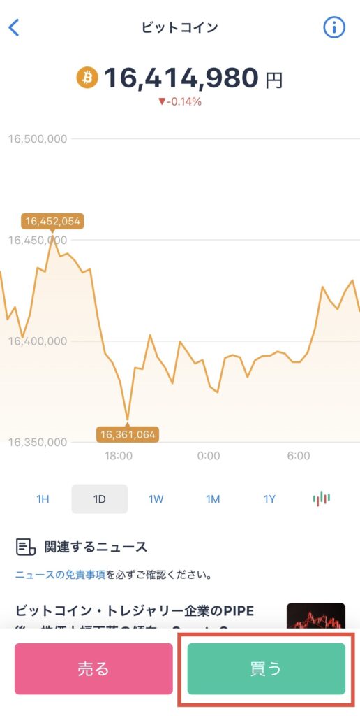 販売所は「買う」ボタンを押すだけで購入できるので、難しい注文方法を知らなくても始められます。