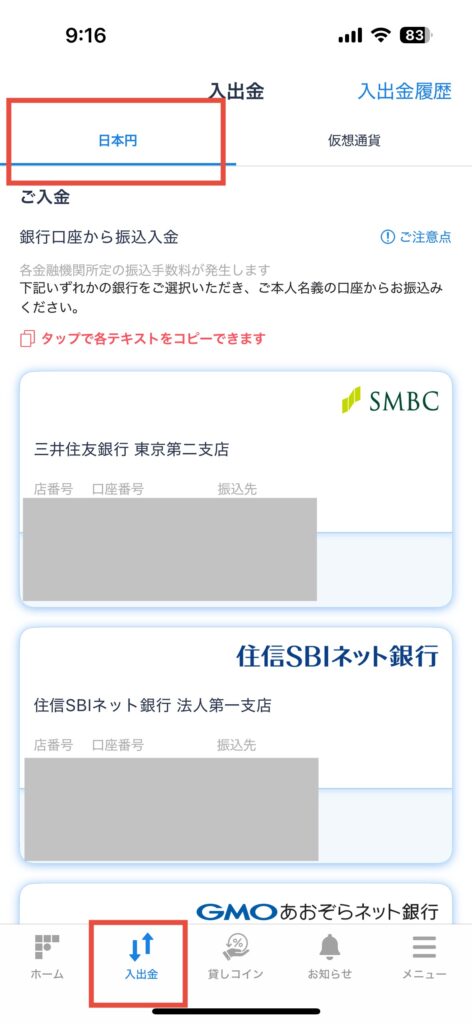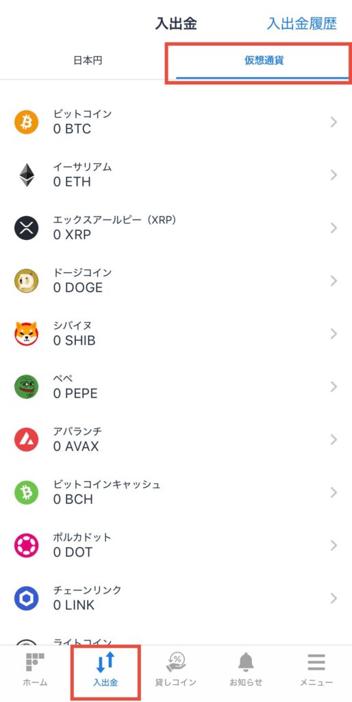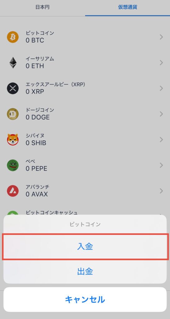 入金方法は2つ ①日本円で入金 ②仮想通貨で入金
