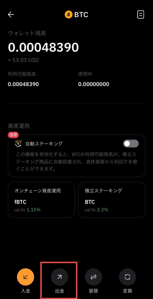 先ほどbitFlyerのビットコインアドレスでコピーしたものを貼り付け。