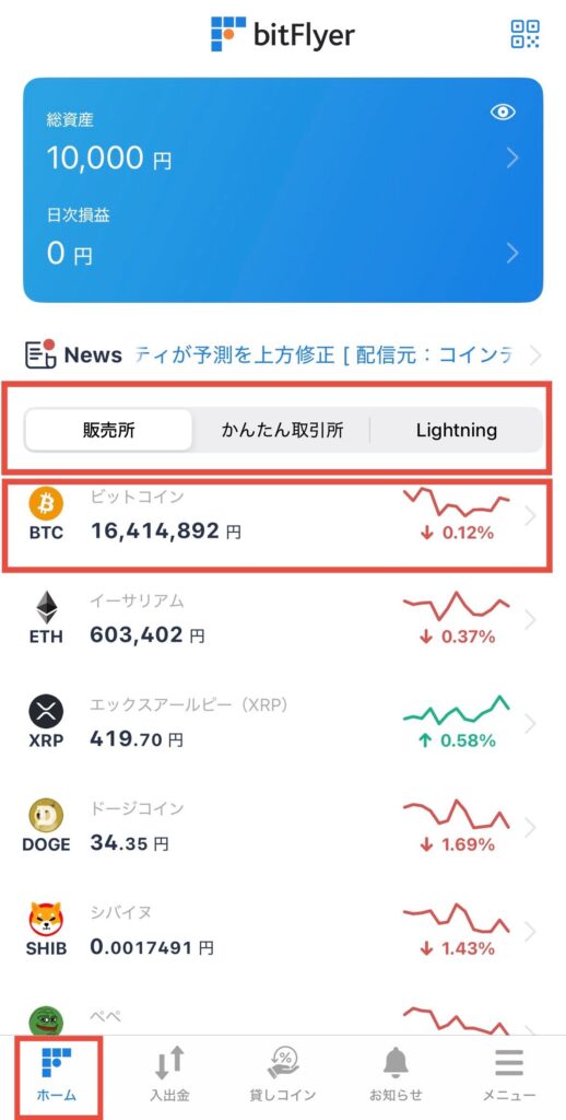 ビットフライヤーの販売所は1円や数百円単位でも購入可能。
