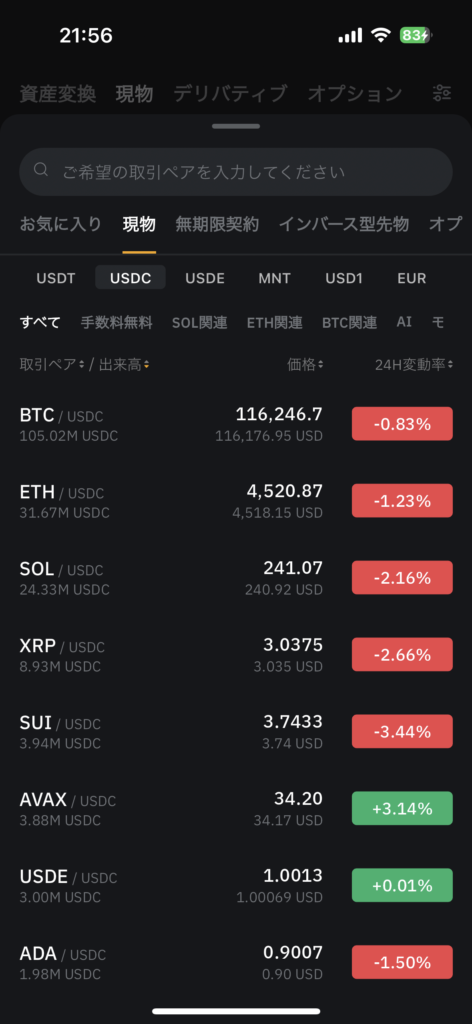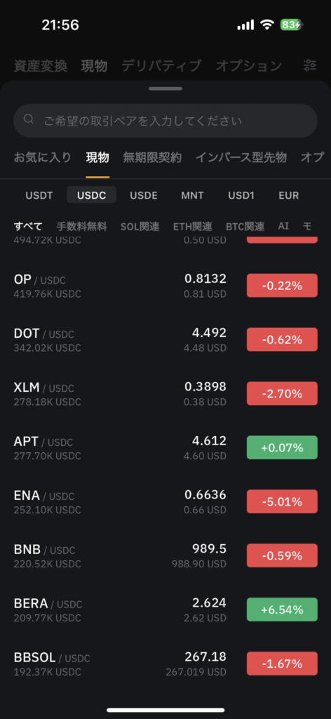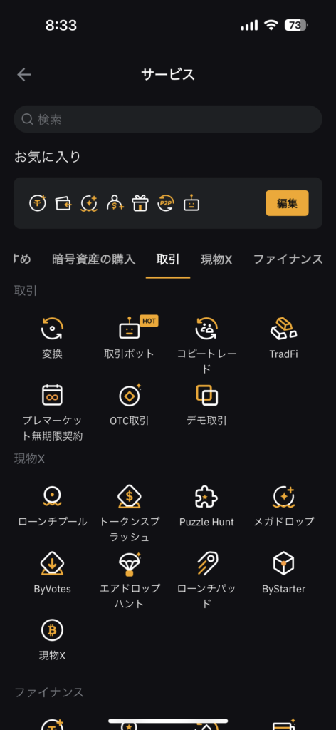 現物に加え、先物やオプション、コピートレードや自動売買ボットまで一か所で使える。