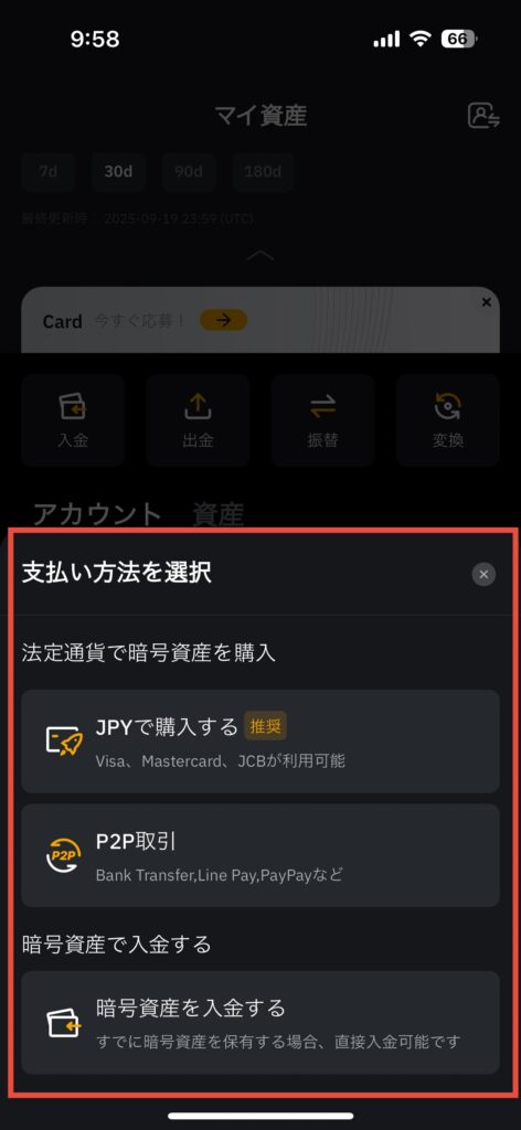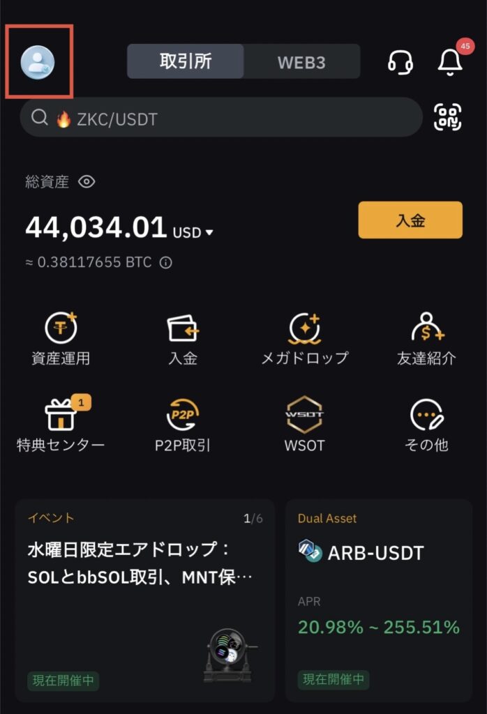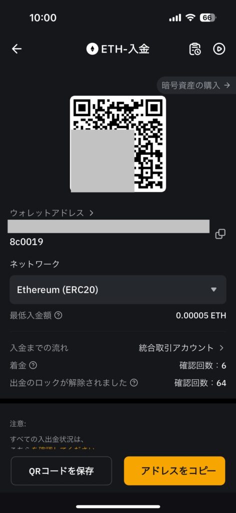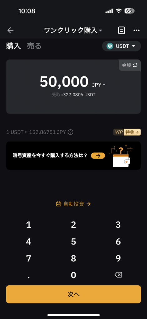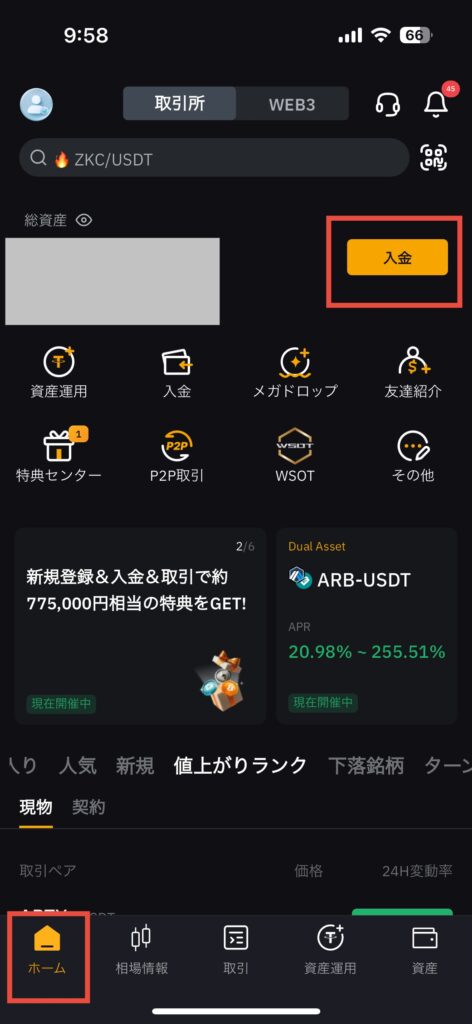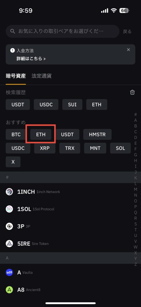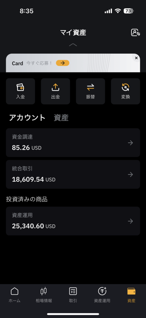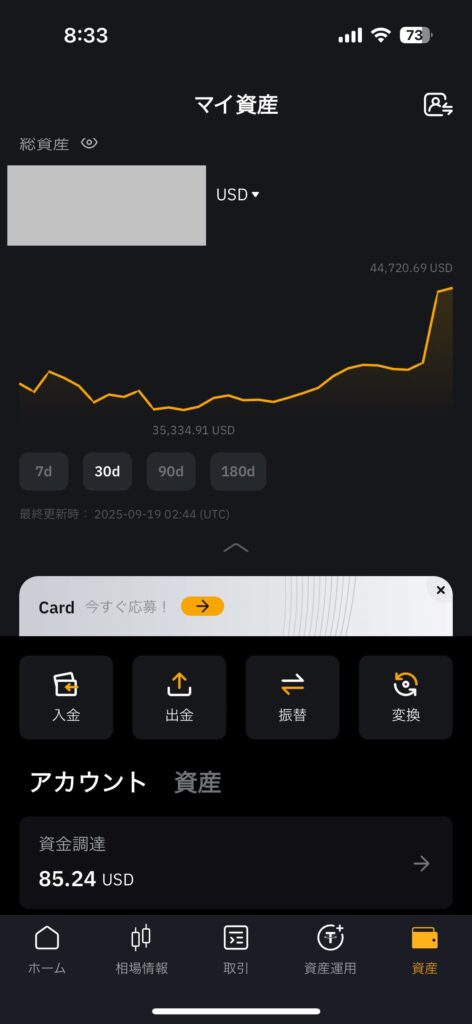 購入が完了したらその通貨が資産のウォレットに入っているか確認。