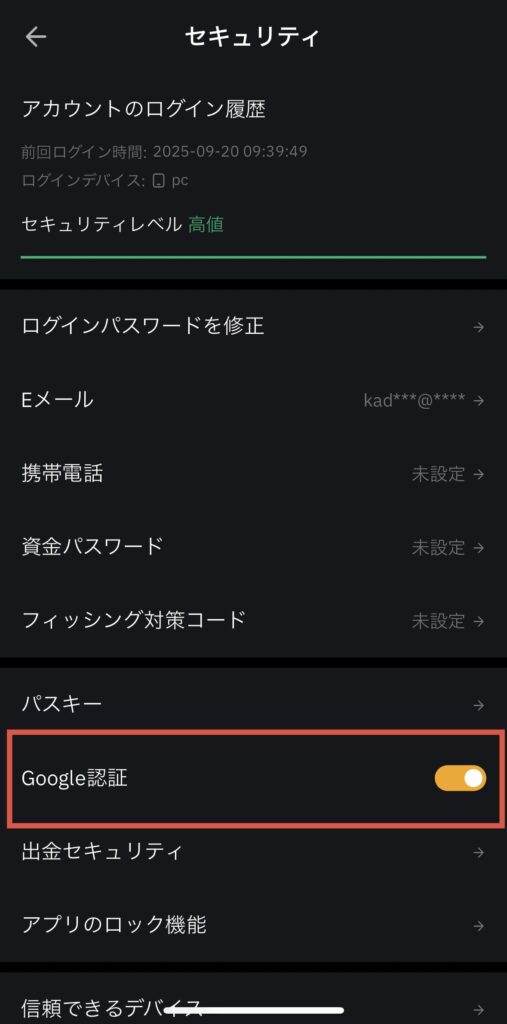 二段階認証、資金コードやPIN、出金アドレスのホワイトリスト、アンチフィッシングコード、端末間の出金確認など、ユーザー側で有効化できる防御を複数提供しています。