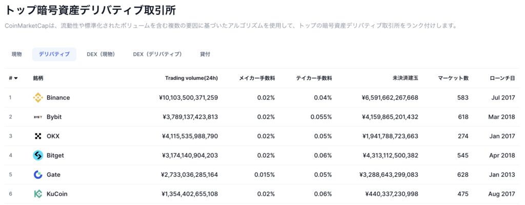 現物はその名の通り仮想通貨の銘柄の取引量の金額、先物はショートやロングといった「契約」を売買するときの損益の額。どちらもトップ3以内に入っています。